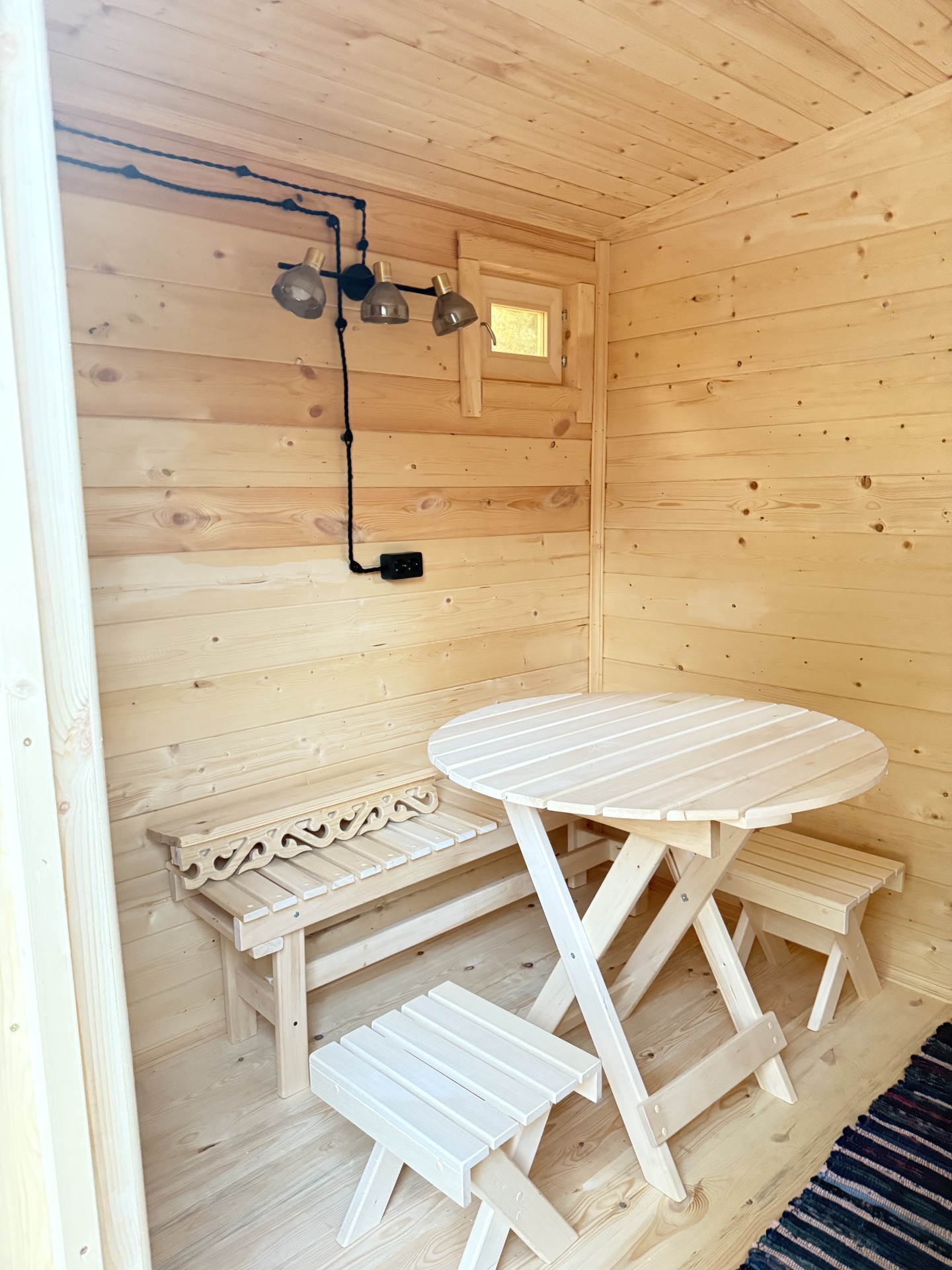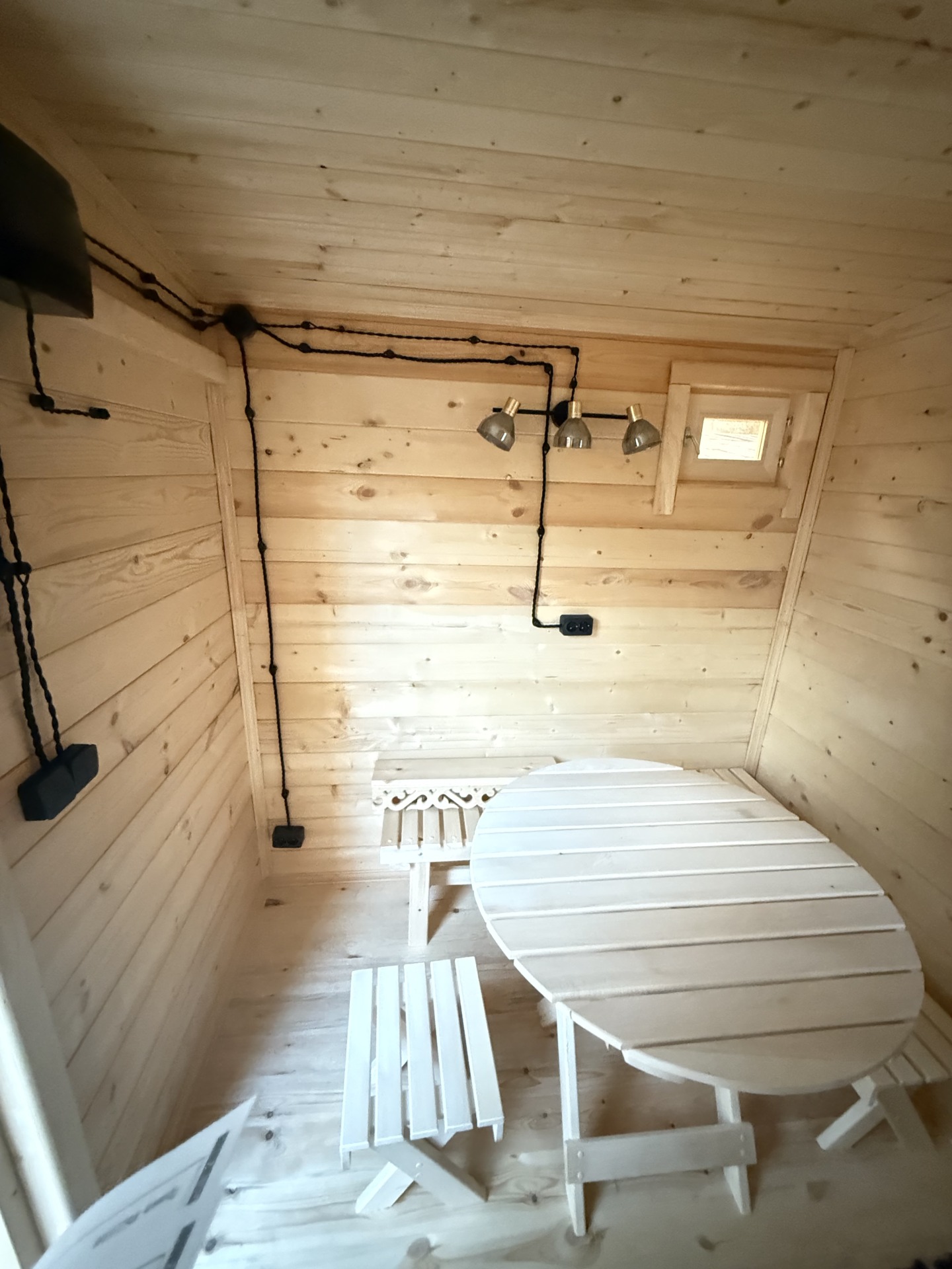 Отделывается липовой вагонкой класс «В» , доп. обрешетка с вензазором, фольга с проклейкой швов. Монтируются лтиповые, двухярусные полки. Для проветривания помещения устанавливается форточка размером 400х400мм. Устанавливается дровяная, банная печь «Каменка» с толщиной металла 3мм. Труба печи выводится в кровлю. Камни для печи 20кг. |