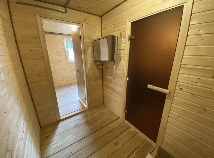 Вагонка хвойных пород, принудительной сушки. Класс «В»: потолок и перегородки. На все стыки стен, углов и потолка монтируется хвойный плинтус. Для отделки используются пневмоинструмент (полускрытый крепеж) |