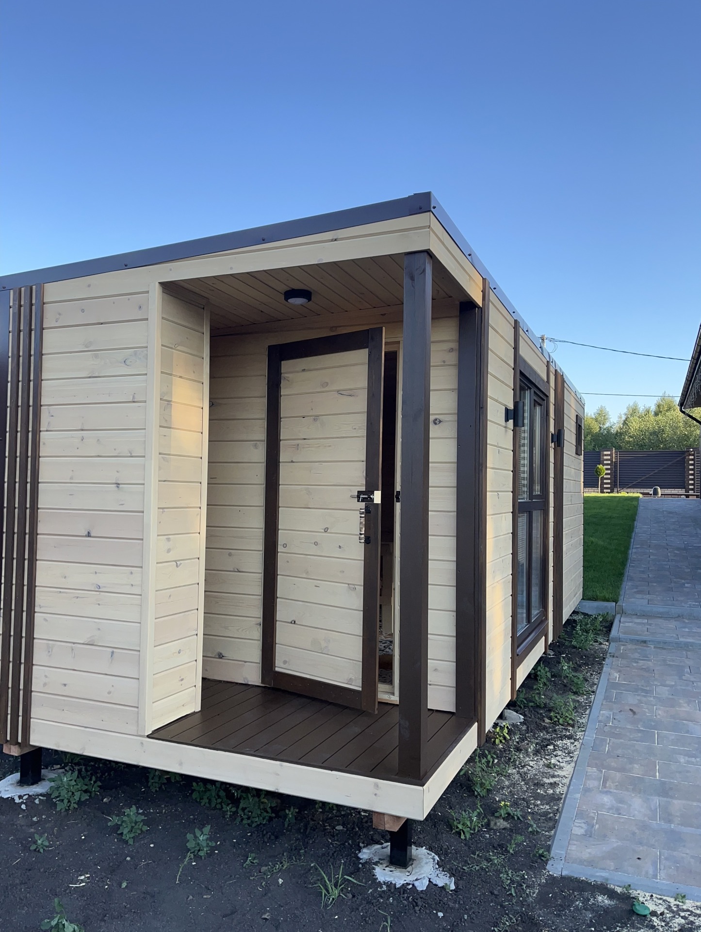 Если нет возможности разгрузки манипулятором, оказываем услугу по сборке бани на месте +20% от стоимости.