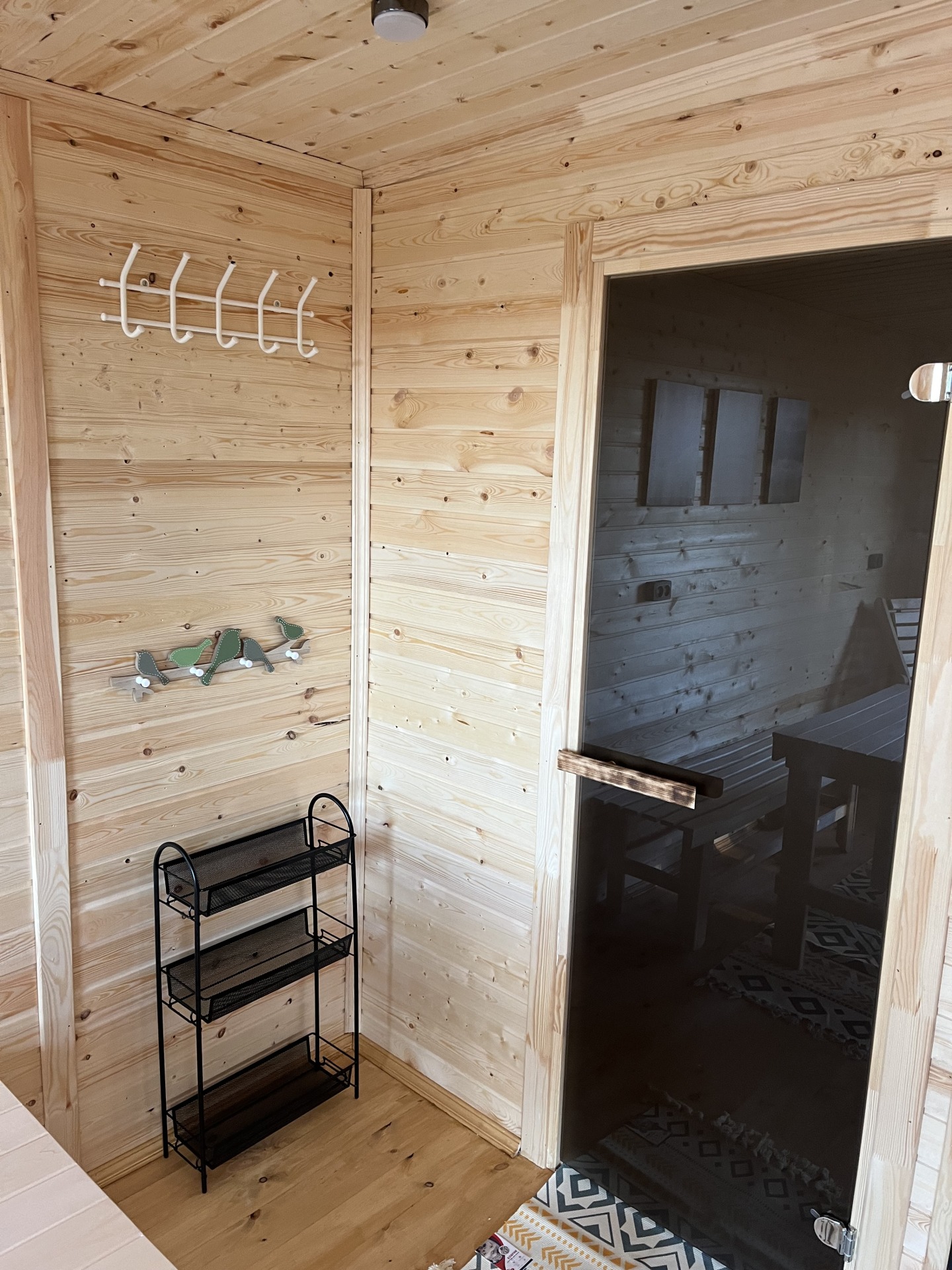 Входная дверь наборная , в парную из осины. |
