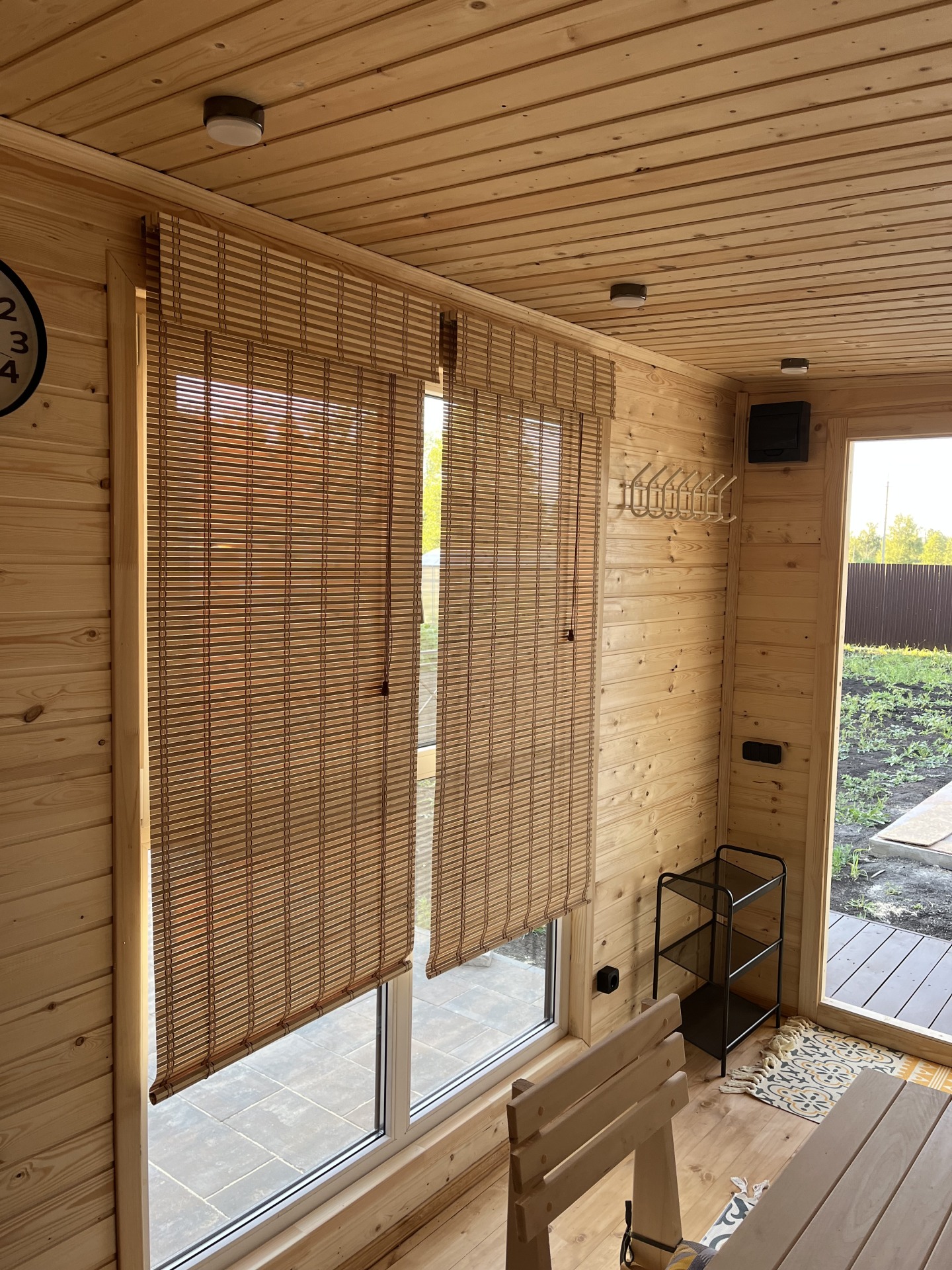 Баня оснащена автоматом на 16А,к-том розеток , выключателями ,и влагостойкими светильниками. Монтаж электропроводки открытый |