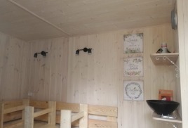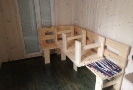 - Электрика, рольставни, душевой поддон с лейкой, комплект мебели (лавки, вешалки для одежды входят в стоимость.