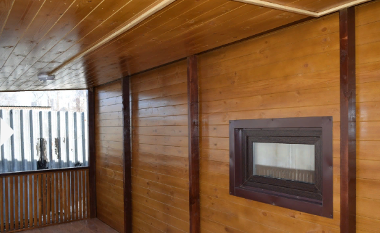 Основание - Деревянное (основание) брус 150*100, Стойки – брус 100*100, 100*50, 50*50 Пол - строганная доска 50 мм, Потолок - фасадная вагонка АВ класса, Стены - декоративная рейка высотой 80 см |