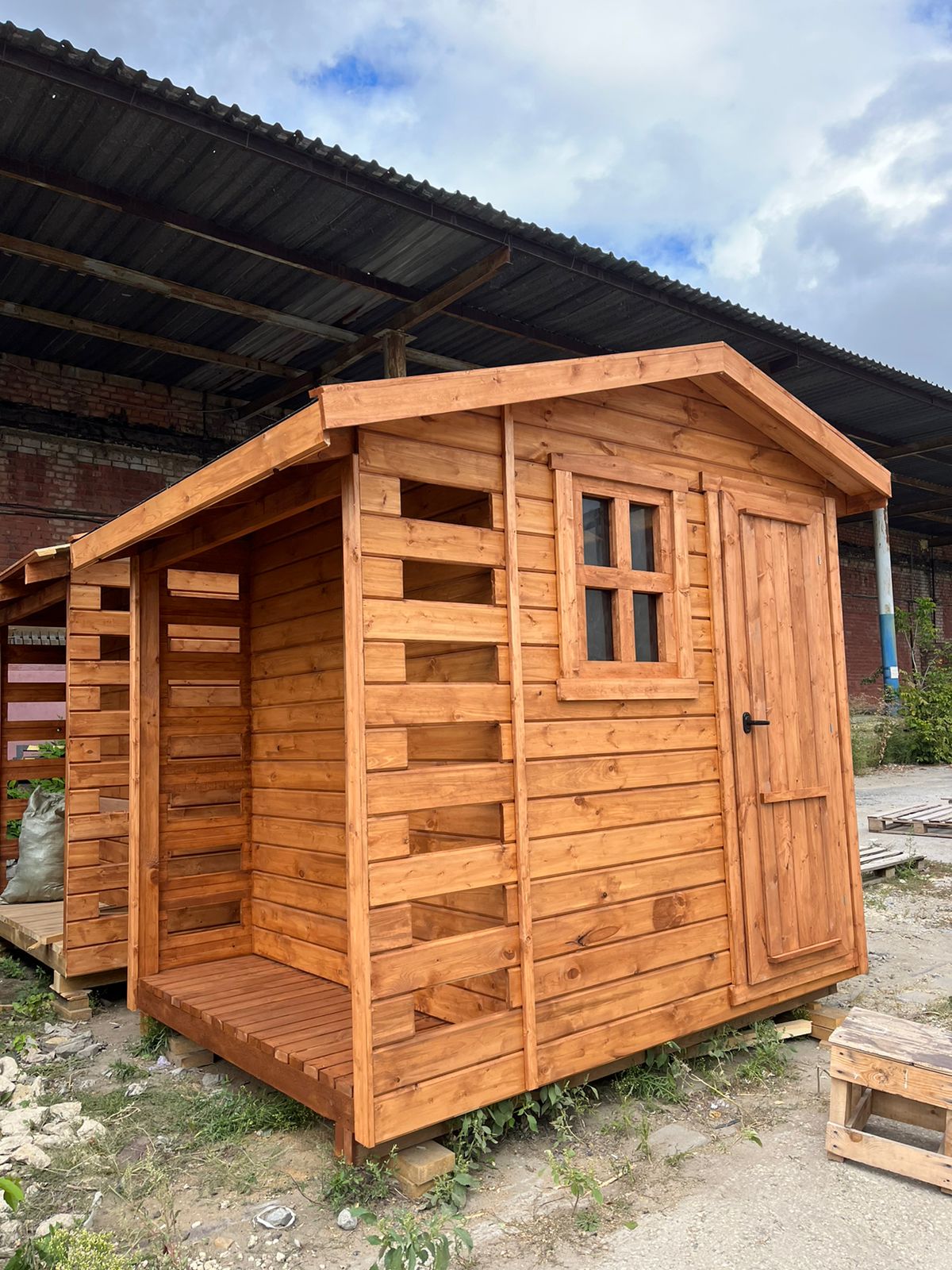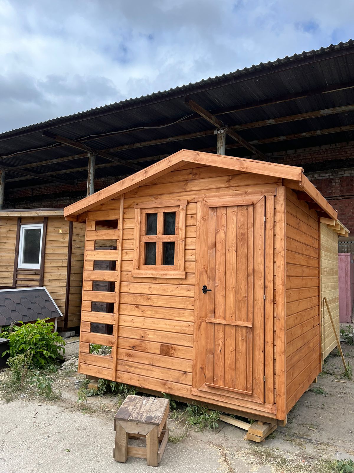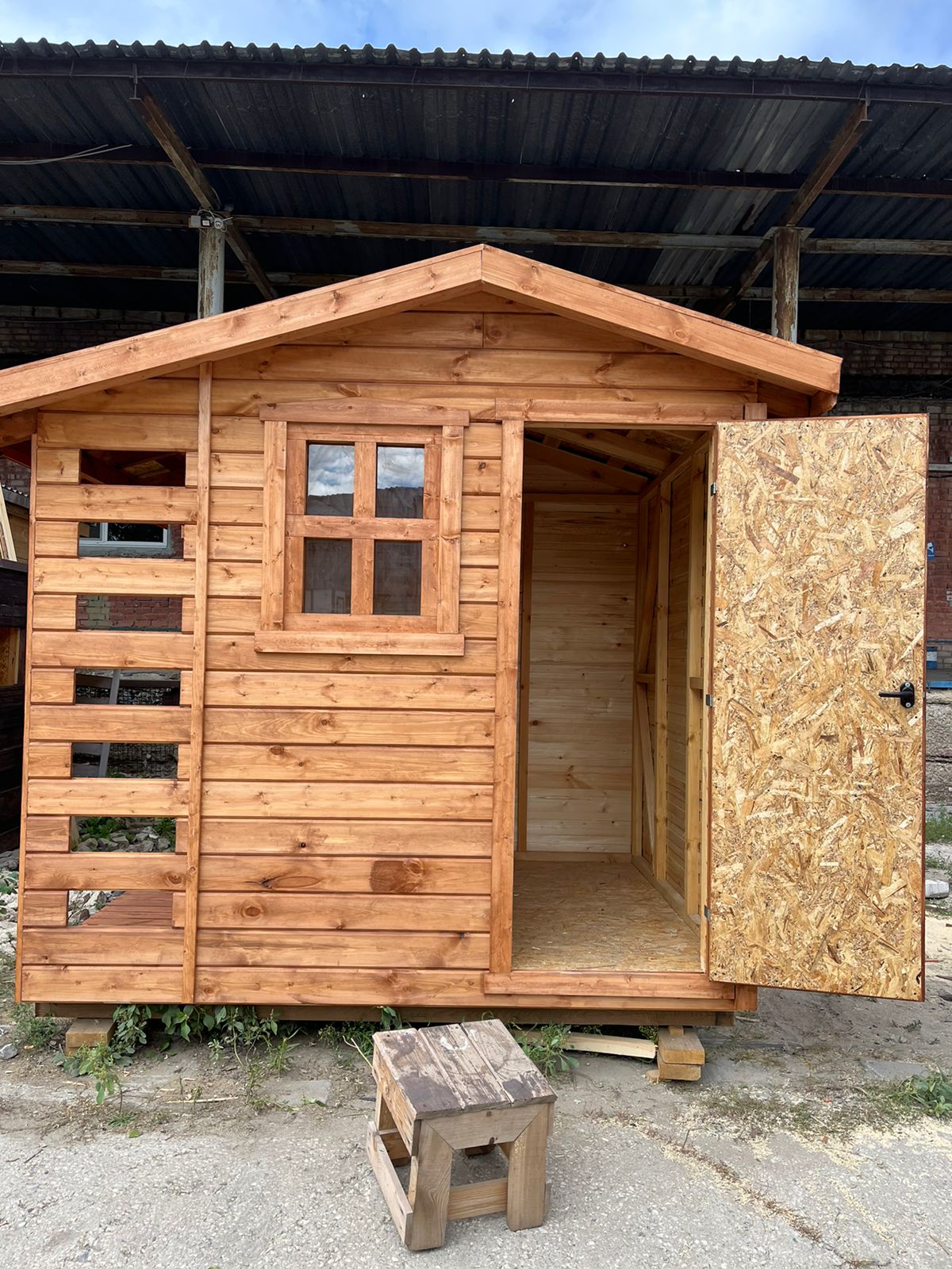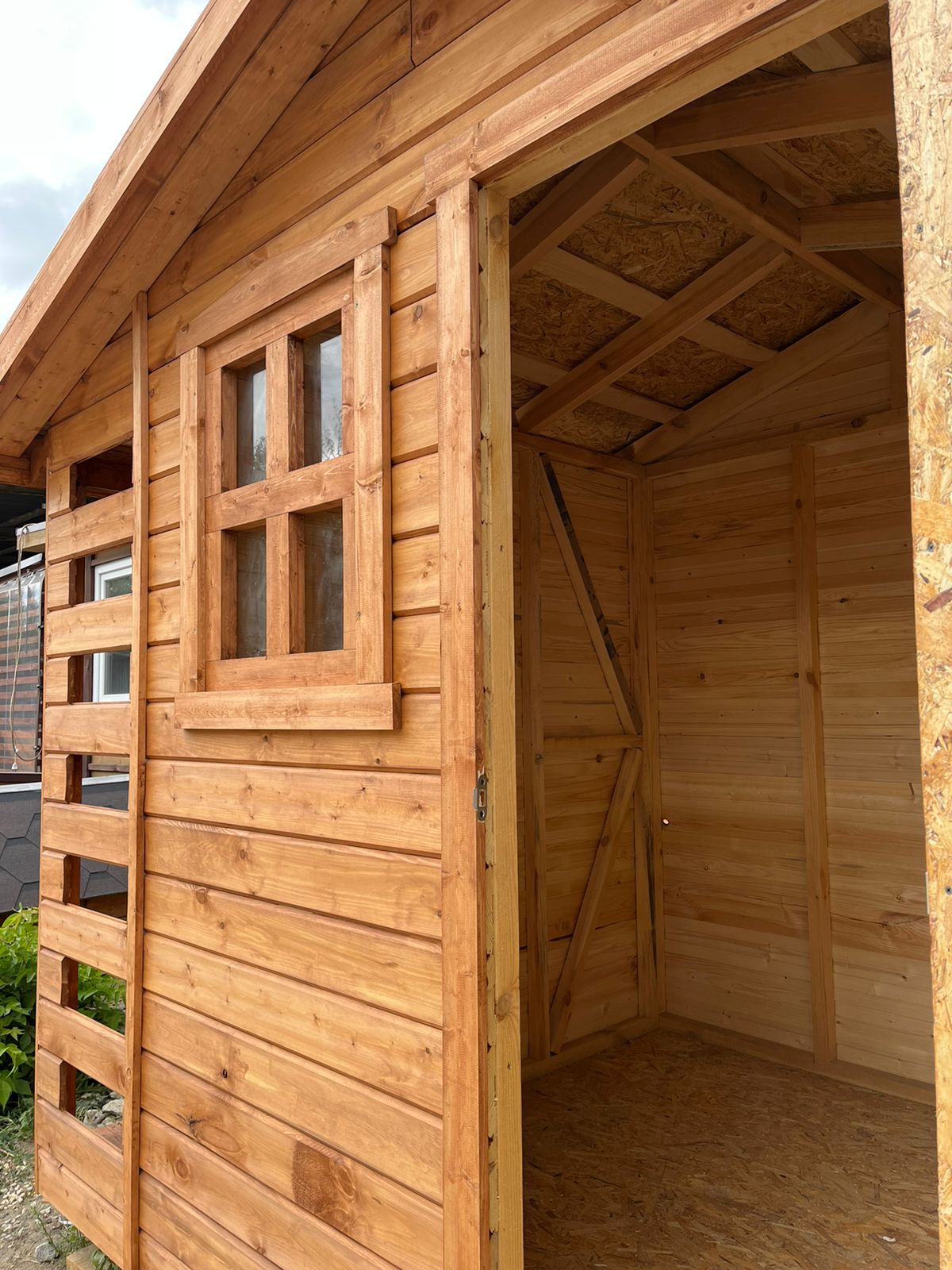 Пол - хозблок: ОСБ 9 мм, плинтус дерево, дровник: шпунтованная доска 36 мм кат. "С".