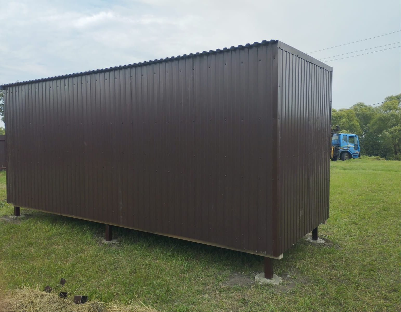 Кровля - односкатная крыша, гофрированный лист "С21" оцинкованной стали (0,45) с декоративно-защитным покрытием.
