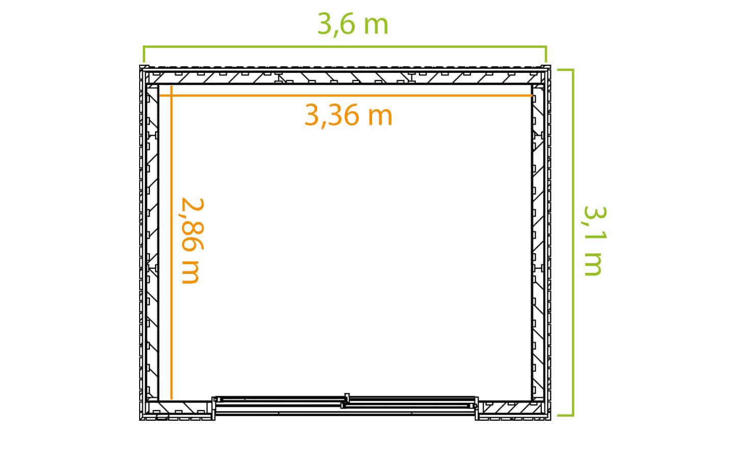Производится наружная пропитка согласно проекту, 1\2 стен зашивается имитацией бруса 21мм, 1\2 стен цветным профлистом С8 0,45. Углы закрываются цветными металлодоборами. (комплектация стандарт) |