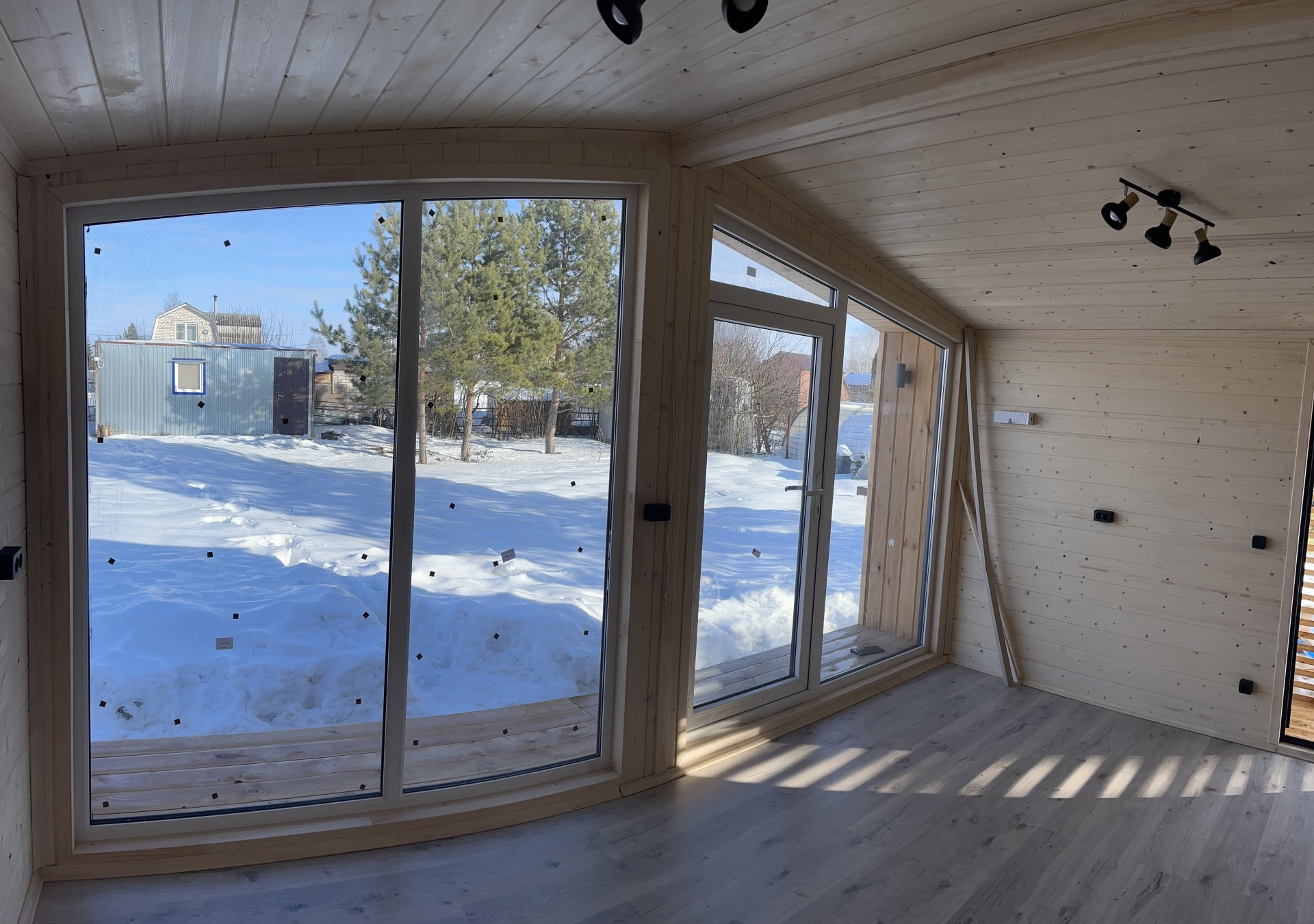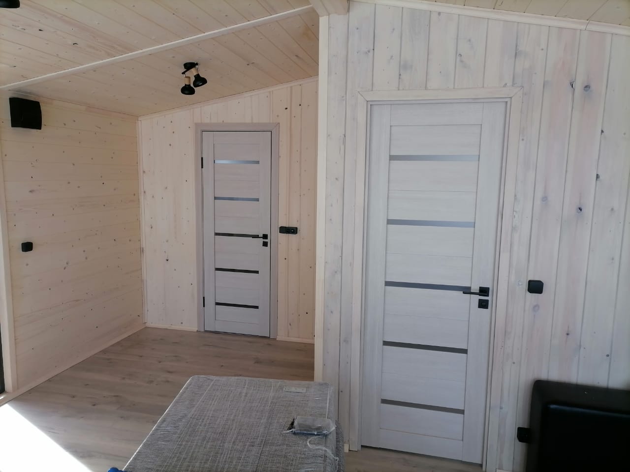 Отделка внутри – штиль кат. С с покраской, несущие перегородки толщина утеплителя 100 мм. Потолок отделан штиль кат С с покраской