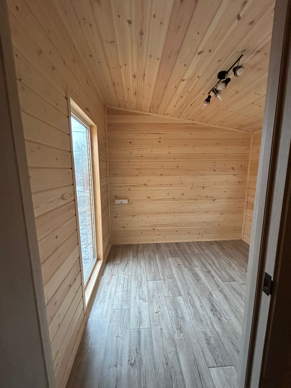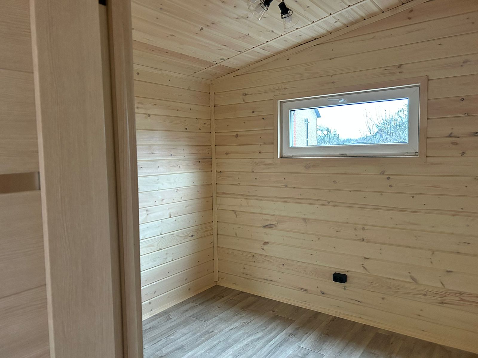 Отделка внутри - имитация бруса 21мм кат. "С" с покраской EUROTEX (цвет "Ваниль"). Перегородки из имитации бруса 21мм кат. "С" без утепления.