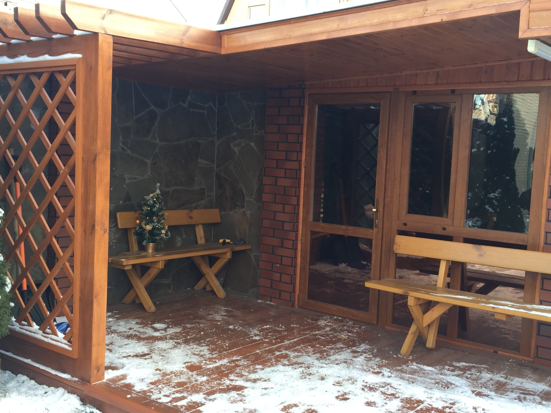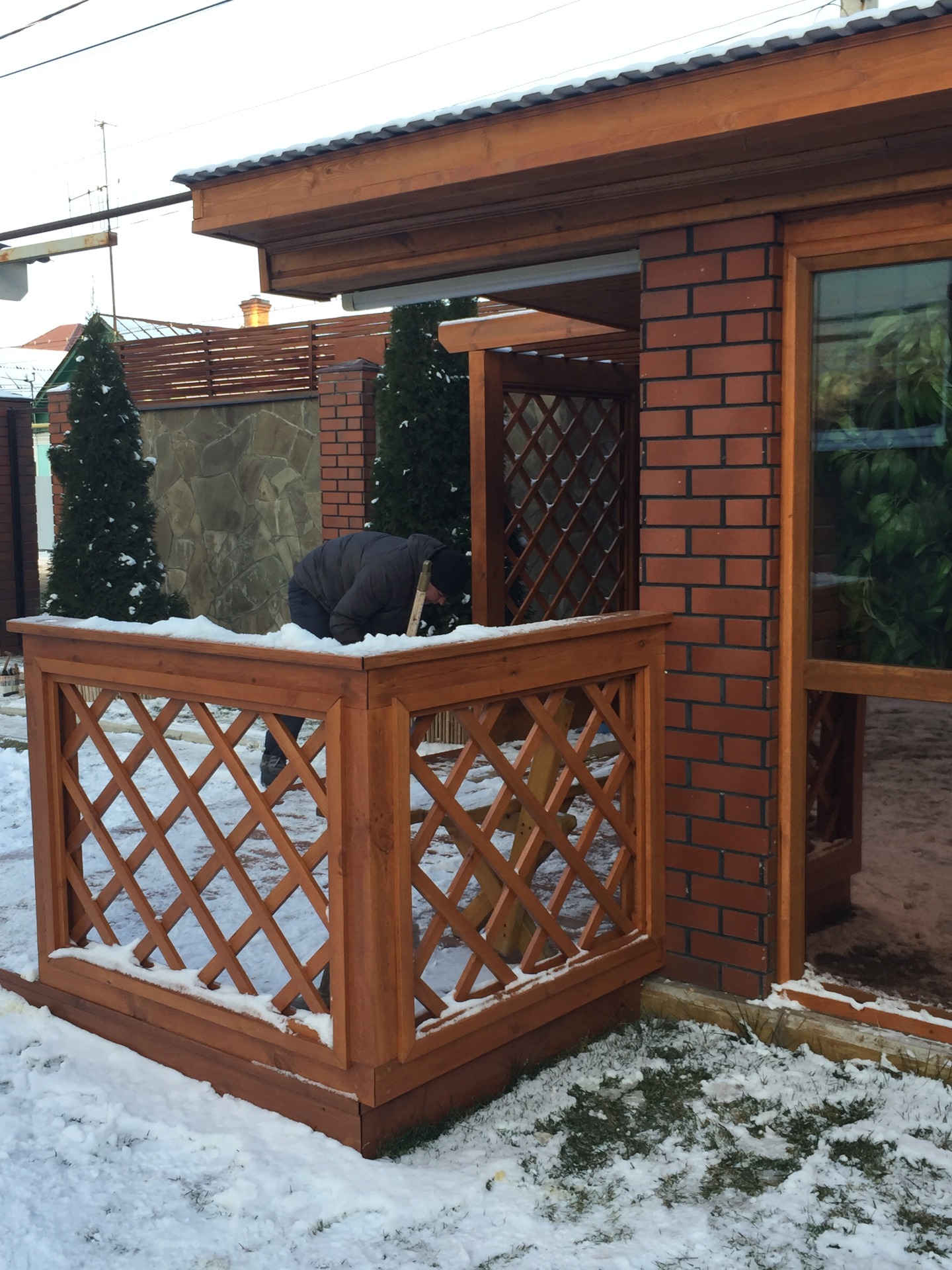 Веранда Сырский 20м2, забор, цветочницы, панели, декор.