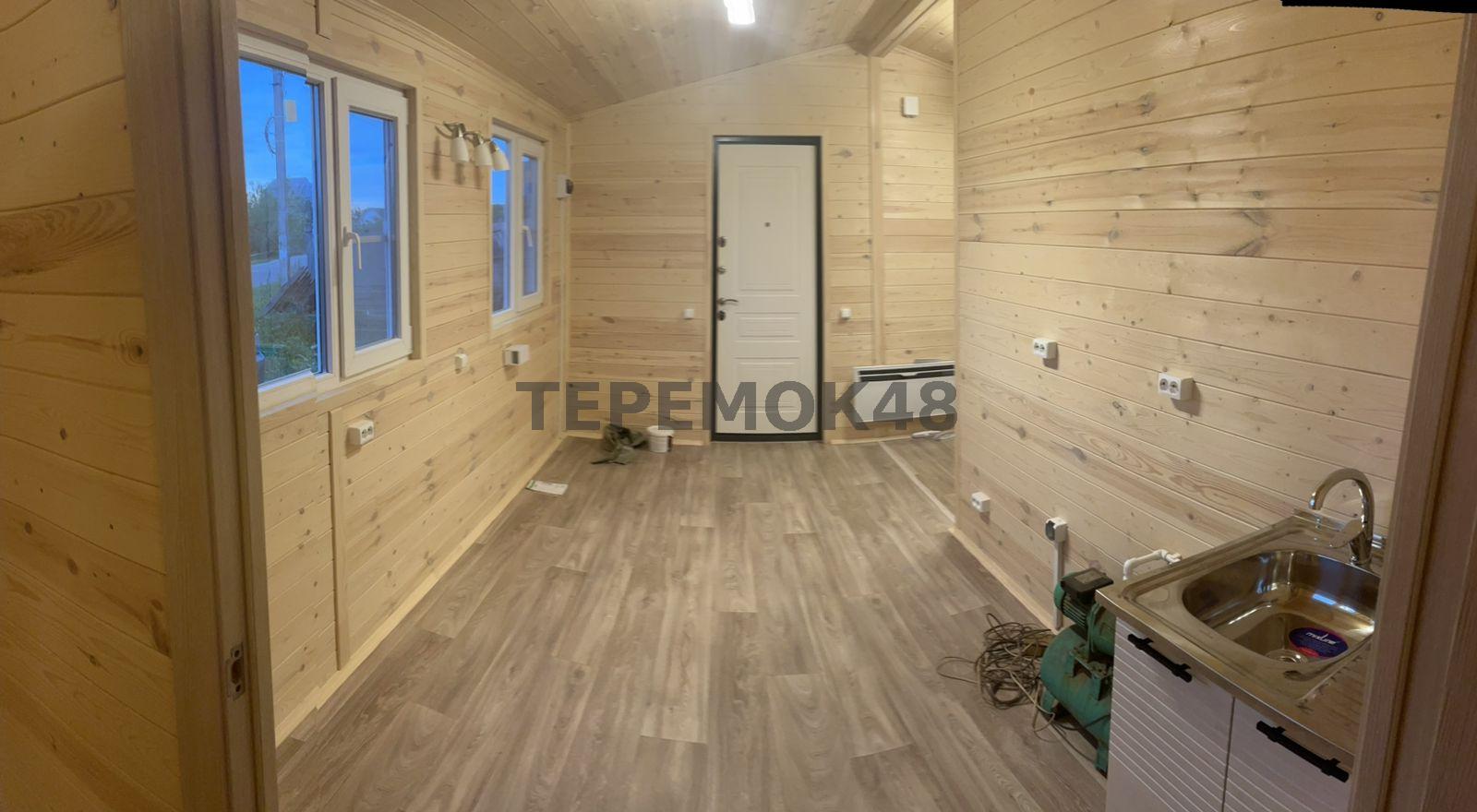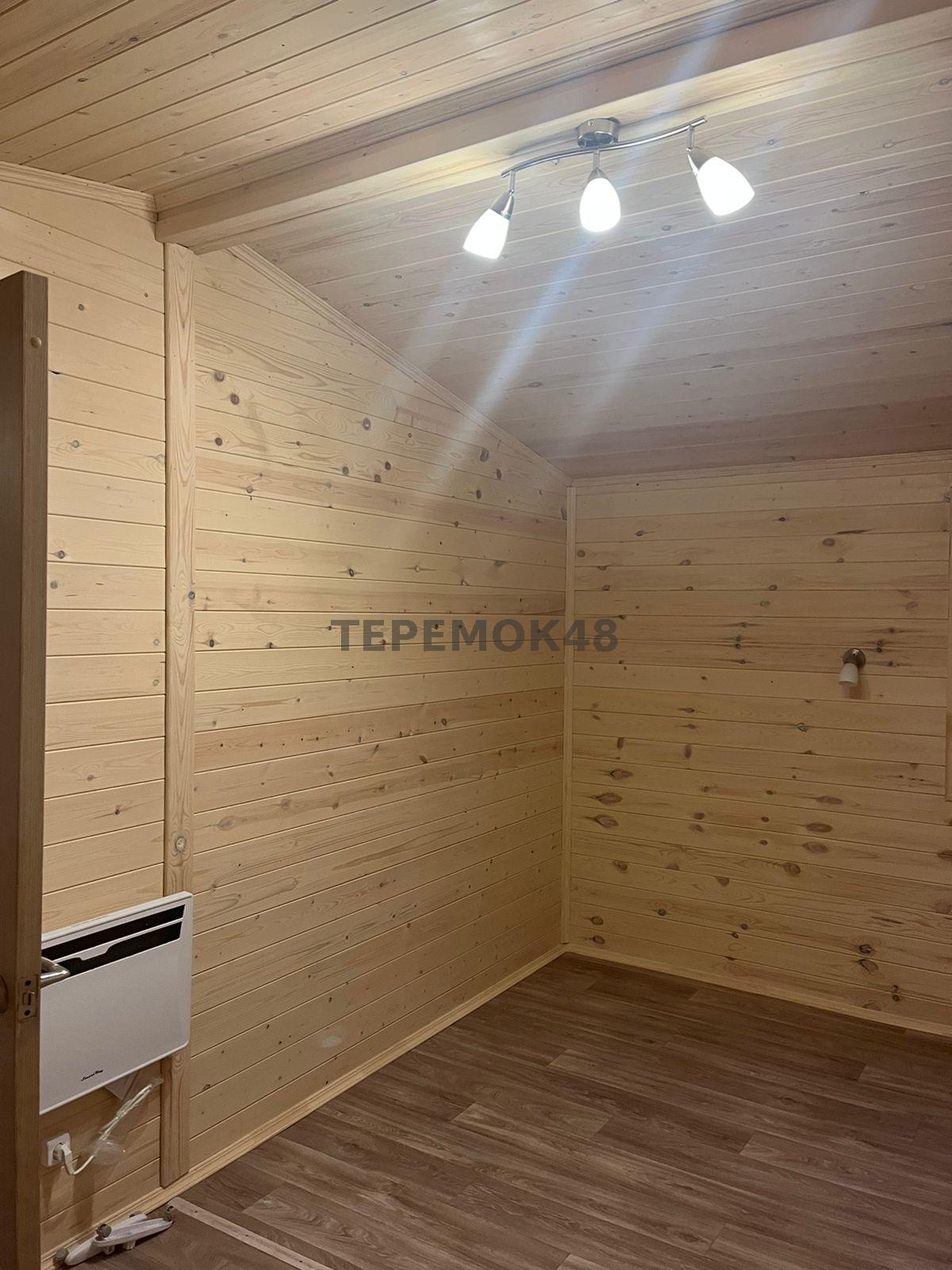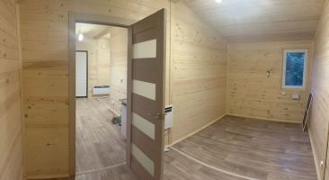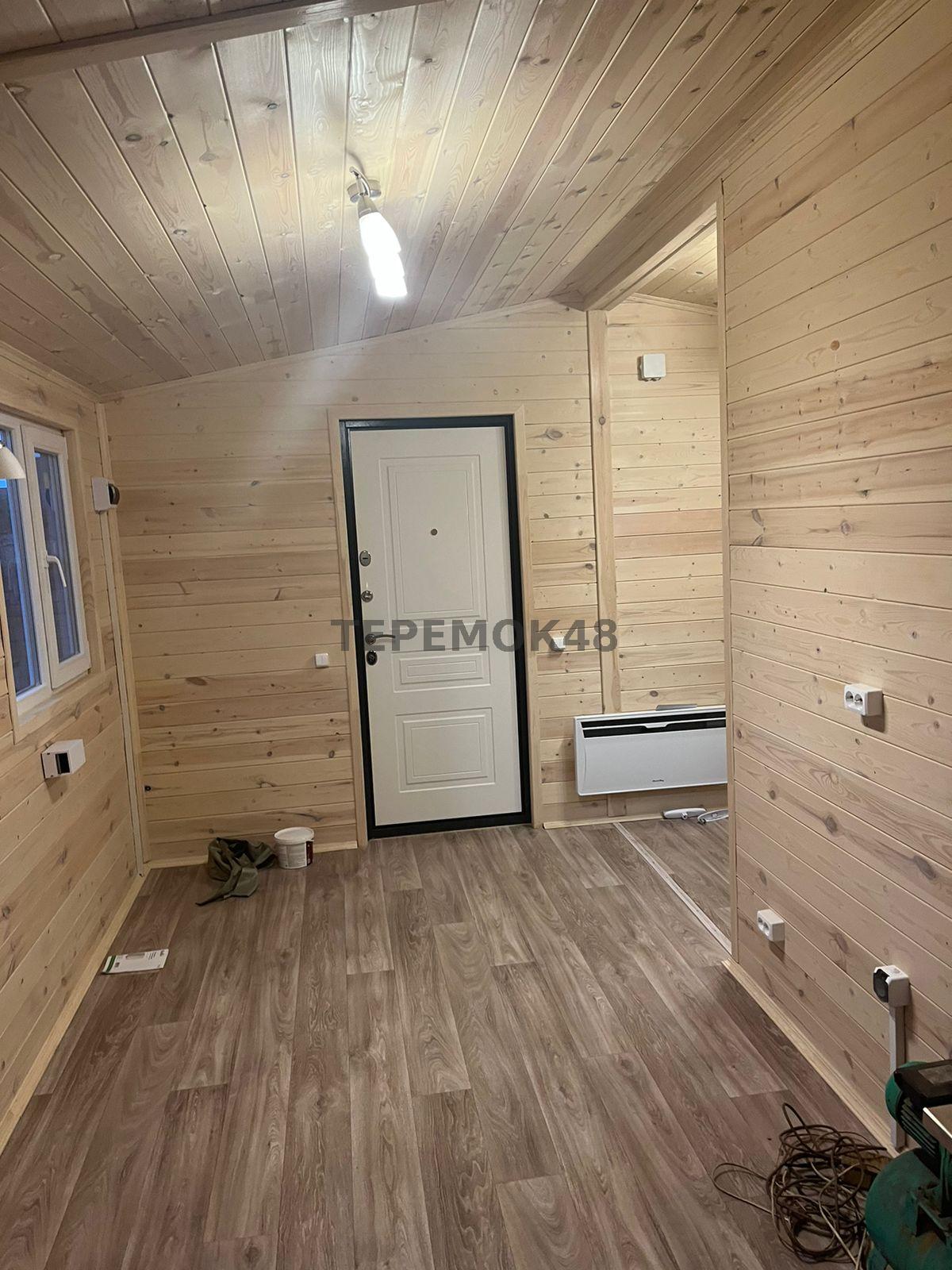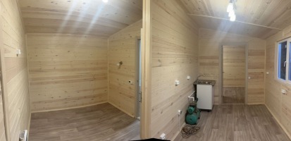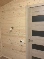 Отделка внутри - имитация бруса 21мм кат. "С" с покраской EUROTEX "Ваниль". Перегородки из имитации бруса 21мм кат. "С" без утепления.