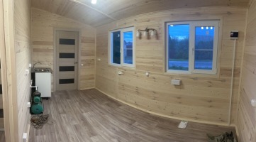 Электрика - модульный дом оснащен автоматами (16А и 25А), комплектом розеток, выключателями и влагостойкими светильниками (в т.ч. уличными). Монтаж электропроводки скрытый.