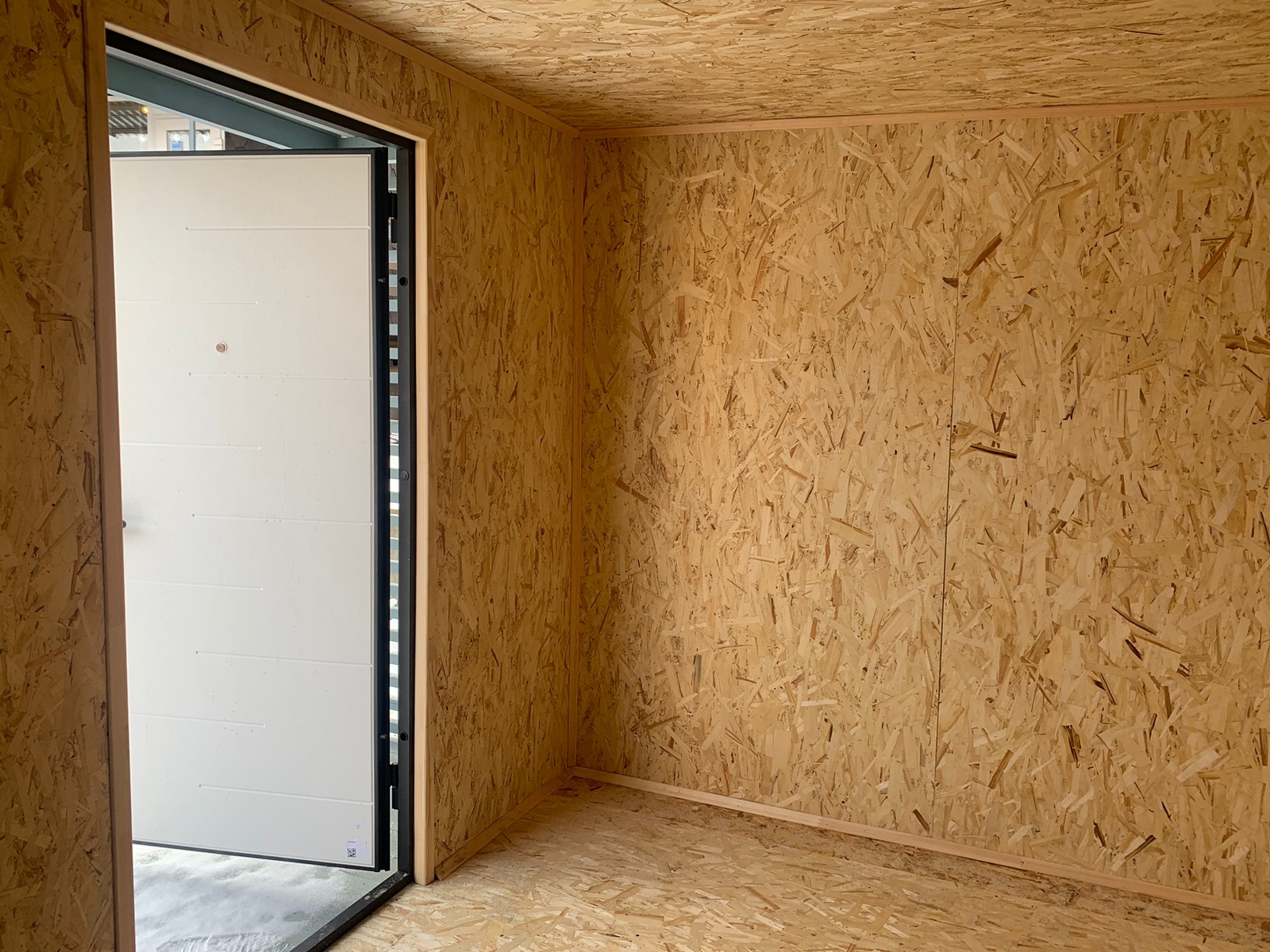 Пол - ОСБ 9 мм с оцинкованным дном, плинтус дерево.